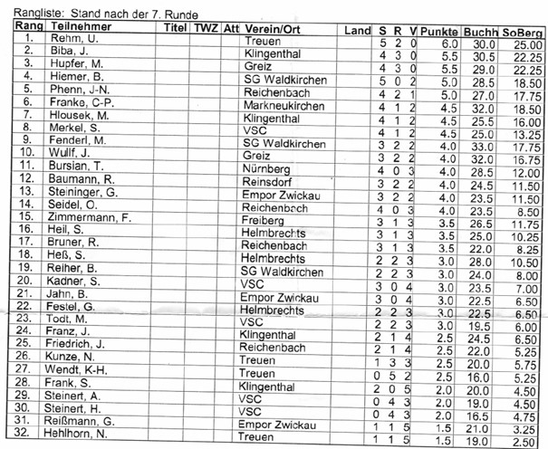 Gespielt wurden 15-Minuten Partien in sieben Runden Schweizer System.