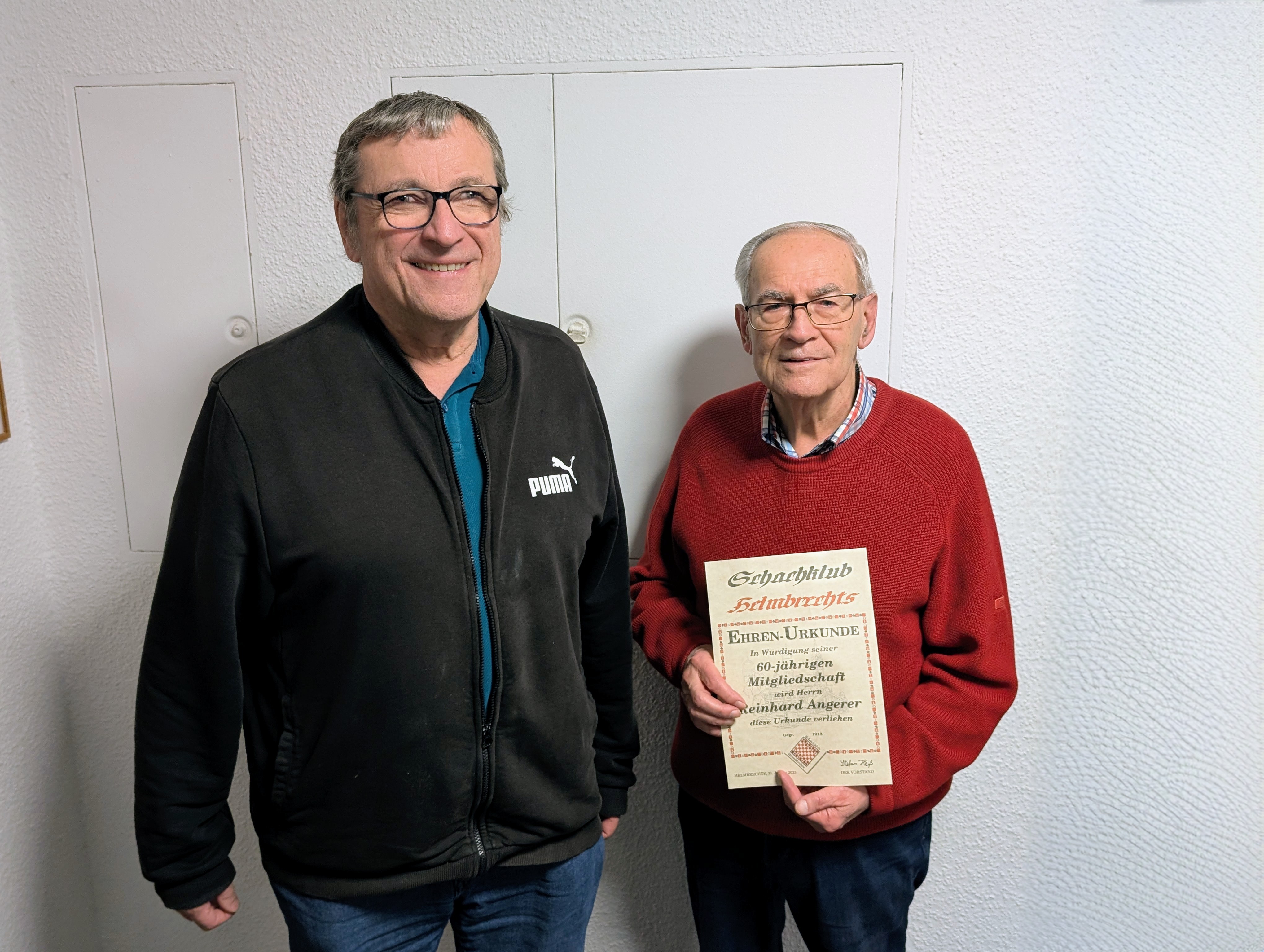 Üblicherweise findet die Hauptversammlung des Schachklub Helmbrechts immer am letzten Freitag im Januar statt. So auch dieses Jahr. Und neben Berichten aus der Vorstandschaft stand diesmal ein ganz besonderer Punkt auf der Tagesordnung: Die Ehrung unseres langjährigen und treuen Mitgliedes Reinhard Angerer für seine sechzigjährige Mitgliedschaft beim Schachklub Helmbrechts.
